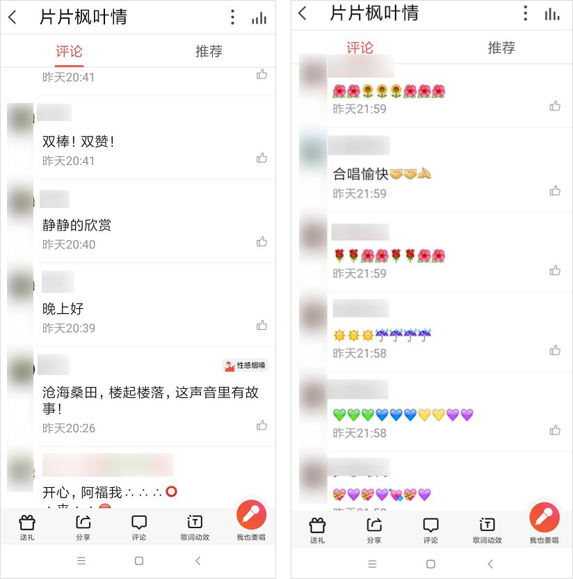 怪不得我经常会看见我妈每发一首歌,下面都有上百条的评论,评论内容都是表情。原来为了升级,她的几个好友都在抱团相互刷评论。