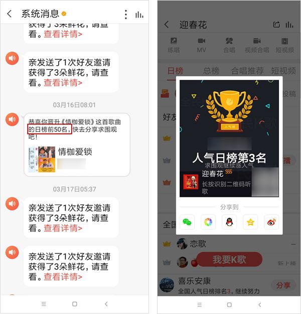 我开始 K 歌之旅了!大家快来找我约唱呀~(前 10 位发起约唱的还有 5 朵鲜花奖励)
