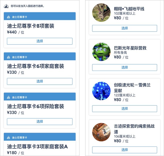 但实际上,迪士尼采取的定价策略是当天统一的门票价(票价淡旺季有波动),在此基础上,游客可以购买“尊享卡”,玩某个项目不用排长队(但是需要排短队)。“尊享卡”的价格是:一个热门项目 80 元,也可以买“套装”:3 项 180 元,6 项 330 元,8 项 440 元。
